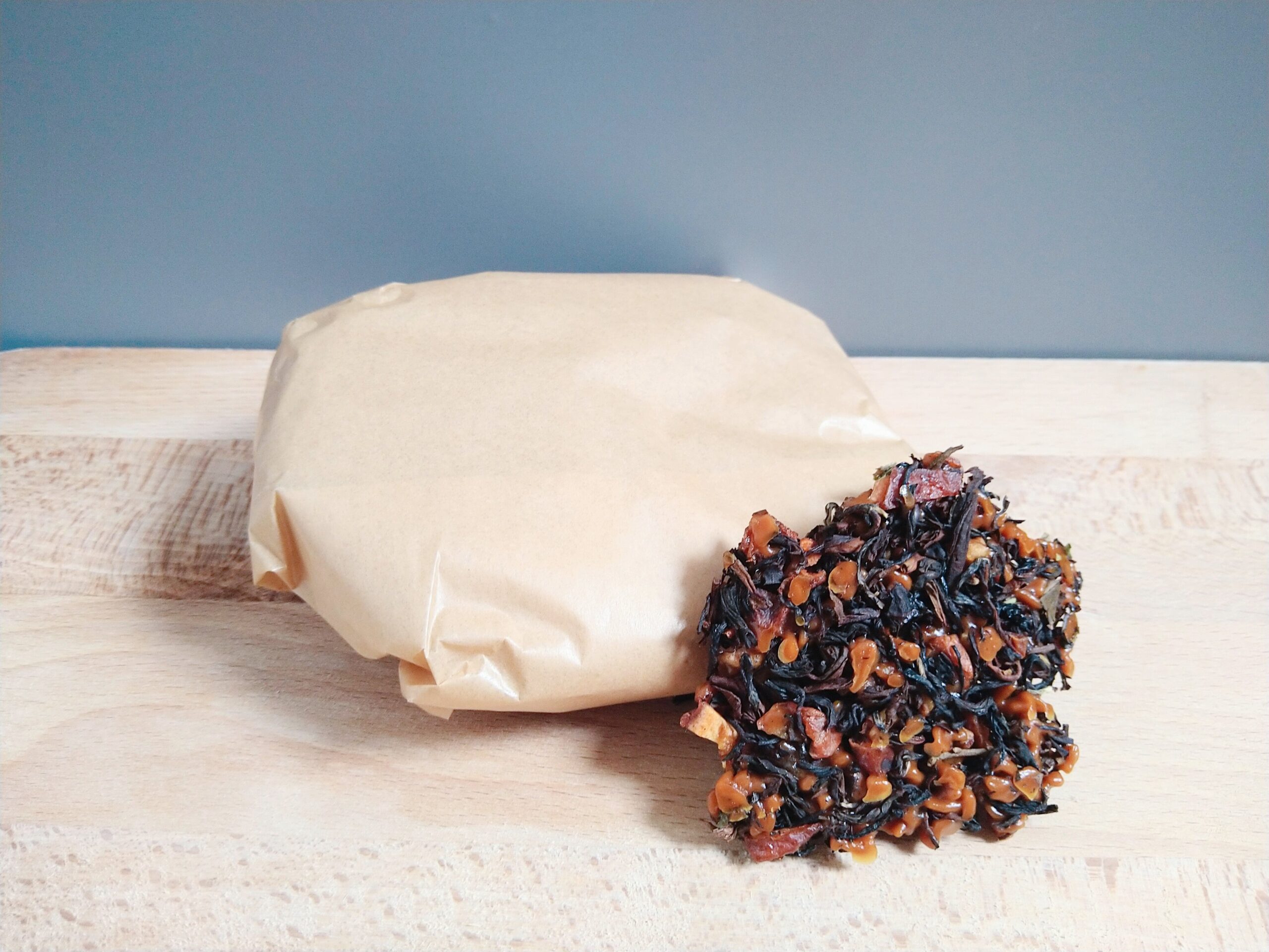 C’est-à-dire qu’il est compressé dans un papier alimentaire.