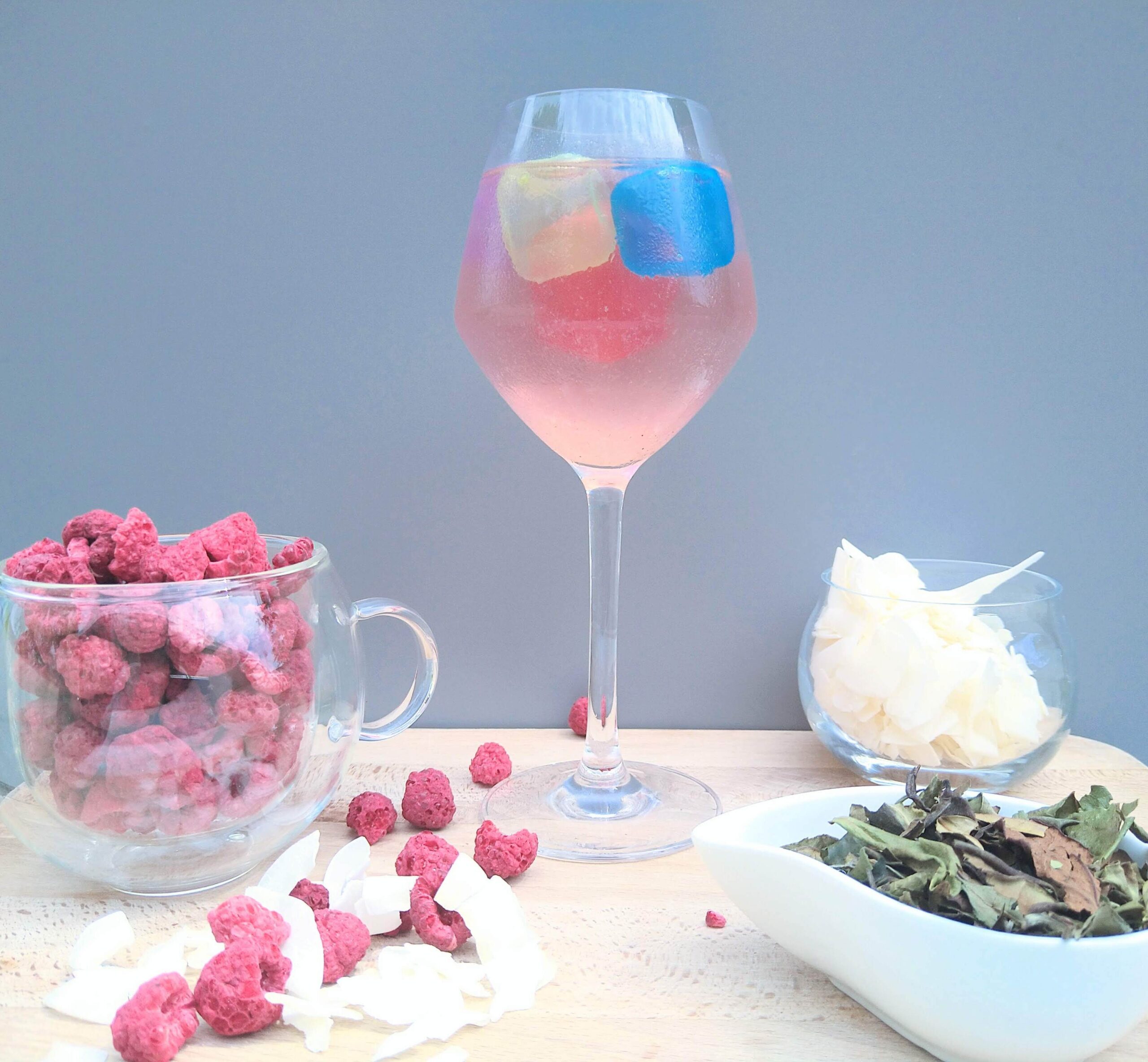 Thé blanc de Chine, morceaux de framboises* et de coco**, extraits naturels.